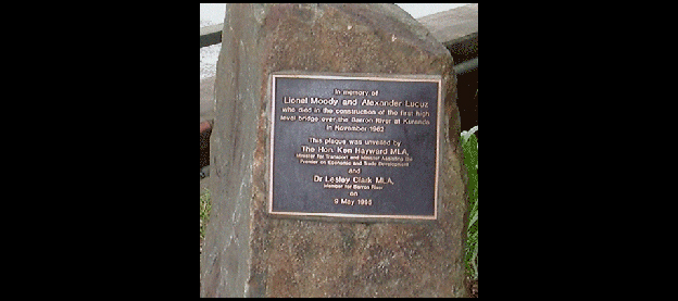- Kuranda. Memorial to those killed during the construction of the Barron River Bridge .